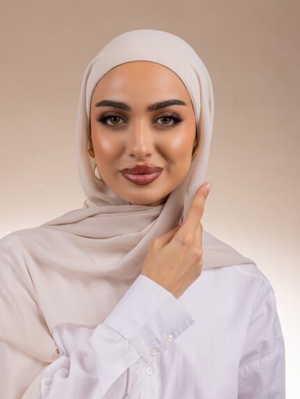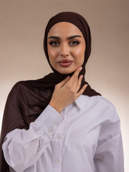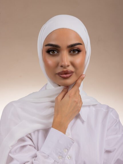 حجاب بقمطة مدمجة مصنوع من قماش شيفون ناعم ومريح مع قمطة من قطن ليكرا تمنح ثباتًا وأناقة في كل إطلالة.